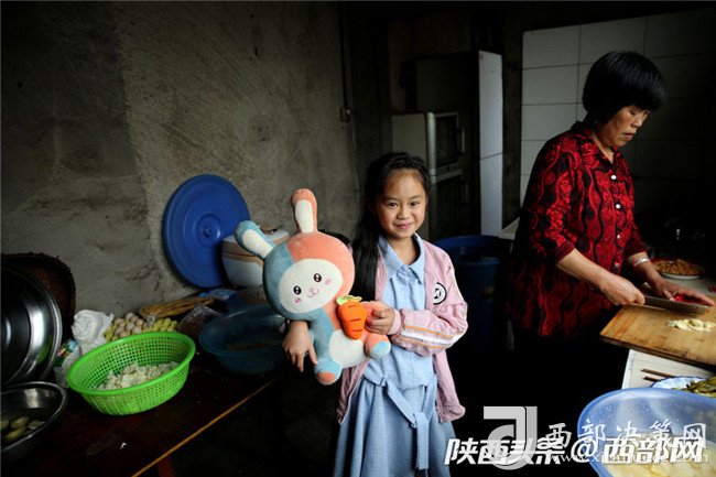 10歲的李蓉也能幫奶奶干些活,幫奶奶洗好菜,奶奶做飯的時候,看著也沒有自己能干的,李蓉便抱個布娃娃玩耍。