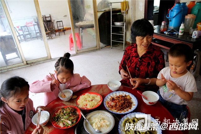 陳遠太的老伴去山上干活去了,中午回不了家吃飯,陳遠太便招呼孫女、孫子吃中午飯,小家伙們?nèi)偷贸院?,不能讓他們餓著。孩子的父母都不在家,做奶奶的更心疼孩子。