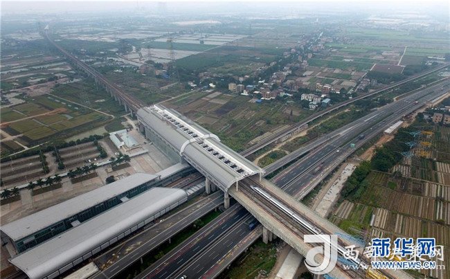 一列高鐵駛進(jìn)廣深港高鐵廣州慶盛站(2017年12月14日攝)。新華社記者盧漢欣攝