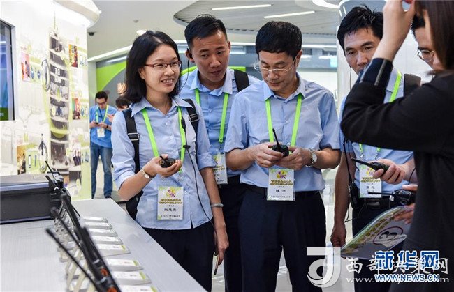參加“國家發(fā)展戰(zhàn)略與香港青年機遇”參訪團的香港青年代表在深圳海能達(dá)通信股份有限公司總部展廳參觀(2018年6月26日攝)。新華社記者毛思倩攝