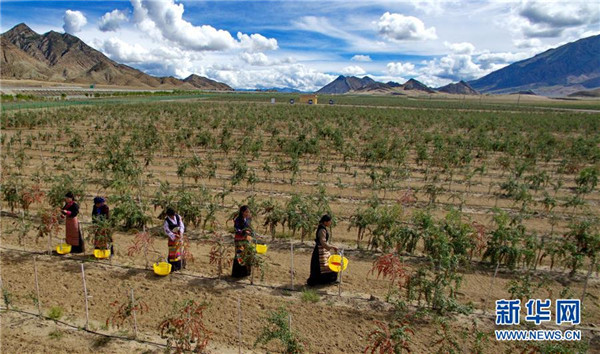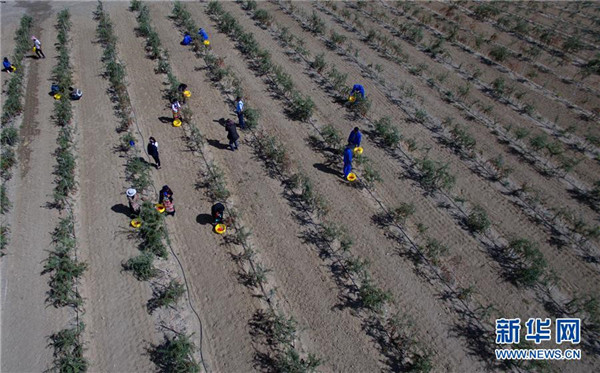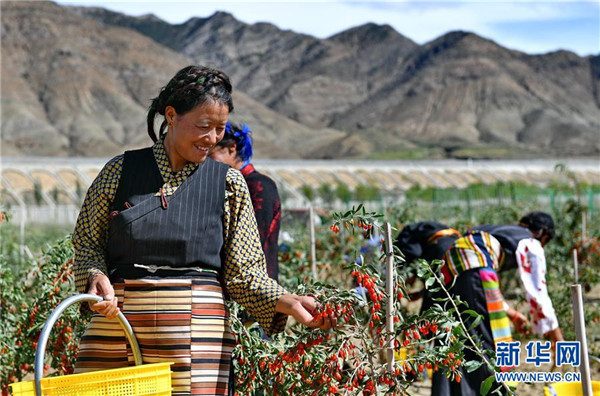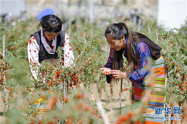 近日,西藏白朗縣萬畝枸杞生態(tài)觀光產(chǎn)業(yè)園進(jìn)入采摘期。兩年多來,經(jīng)過當(dāng)?shù)卣推髽I(yè)的共同努力,將原有的沙荒地進(jìn)行改造,成功栽培7000余畝枸杞目前已果實累累。 新華社記者 張汝鋒 攝