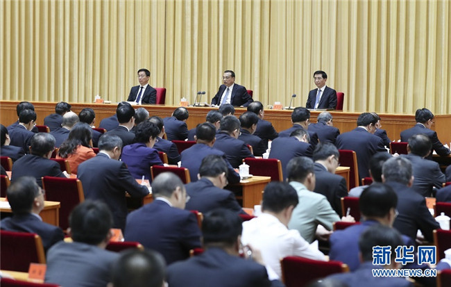 李克強在會上講話。汪洋、王滬寧、趙樂際、韓正出席會議。
