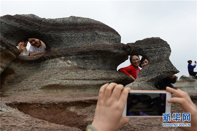 貴州省松桃苗族自治縣盤(pán)石鎮(zhèn)的紅石林景區(qū)山石奇特,吸引眾多游人。 新華社記者 楊楹 攝