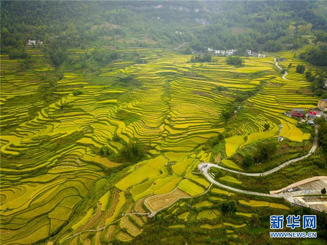 花田鄉(xiāng)千畝梯田(9月19日無(wú)人機(jī)拍攝)。記者劉潺攝