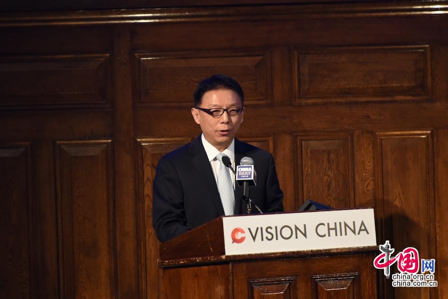 9月13日,中國(guó)日?qǐng)?bào)社以“改革開(kāi)放再出發(fā):中國(guó)與世界新愿景”為主題在英國(guó)倫敦喬治街1號(hào)舉辦第五期“新時(shí)代大講堂”。中國(guó)日?qǐng)?bào)社總編輯周樹(shù)春致辭。(攝影 王志永)