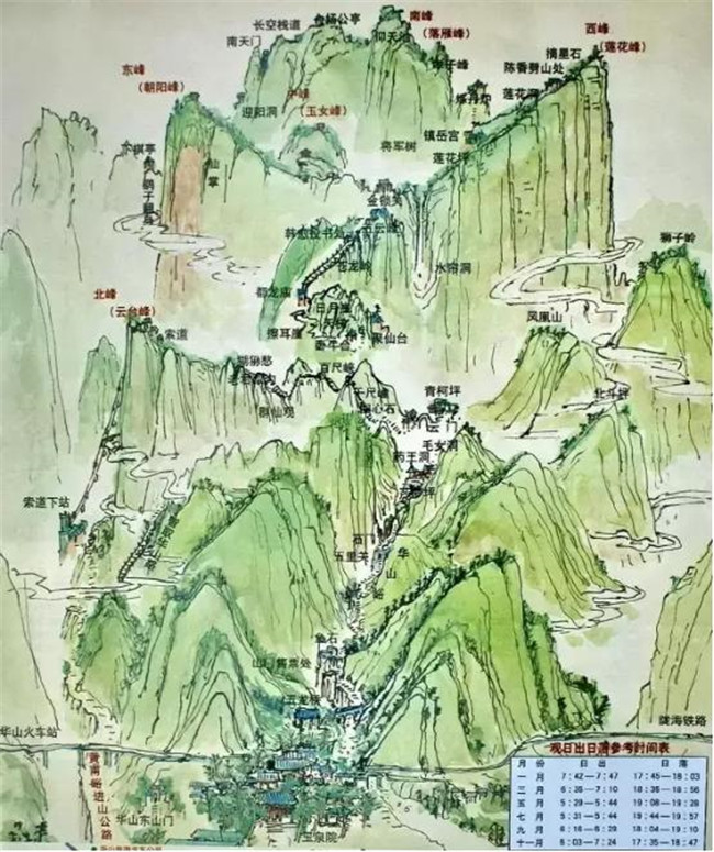 “自古華山一條路”就是當(dāng)?shù)厝怂f的“華山峪”登山道,包括了自古以來華山唯一登山道上的沿途各景點(diǎn),連起來就是通常所說的“自古華山一條路”。登華山最大的樂趣即為登山本身,一邊克服種種山路的艱險(xiǎn),一邊移步換景觀賞沿途風(fēng)光,所以這條經(jīng)典的登山路線至今仍然是登華山的最佳選擇。