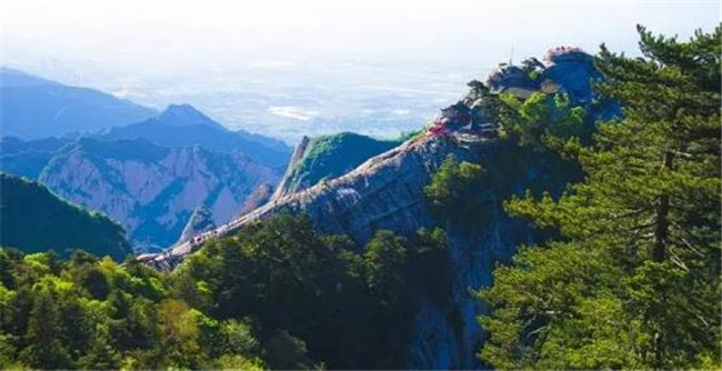 又因峰巔有巨石形狀好似蓮花瓣,古代文人多稱其為蓮花峰、芙蓉峰。西峰為一塊完整巨石,渾然天成。西北絕崖千丈,似刀削鋸截,其陡峭巍峨、陽剛挺拔之勢是華山山形之代表,因此古人常把華山叫蓮花山。西峰南崖有山脊與南峰相連,脊長300余米,石色蒼黛,形態(tài)好像一條屈縮的巨龍,人稱為屈嶺,也稱小蒼龍嶺,是華山著名的險(xiǎn)道之一。