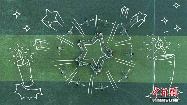 一提到軍訓(xùn),除了走方陣,站軍姿,你還能想到什么?近日,在福建師范大學(xué)協(xié)和學(xué)院2018級(jí)新生軍訓(xùn)場(chǎng)上,128位軍訓(xùn)新生以“閃閃紅星”“牢記八一”“嘹亮軍歌”等為題材拍攝出的一組航拍造型,并對(duì)照片進(jìn)行手繪加工,記錄下了新生們不一樣的軍訓(xùn)瞬間。陳可涵 攝 劉少航 繪