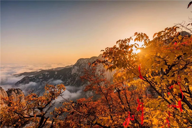 寒露過后,現(xiàn)已進(jìn)入深秋,天寒夜長,秋霧漸起,大雁南飛,風(fēng)吹葉落,萬物都收斂起來。但華山的色彩,卻不甘示弱,五彩繽紛的色彩在秋風(fēng)中,挑動(dòng)起人們的心弦。