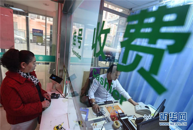 2017年4月8日,北京“醫(yī)藥分開(kāi)”綜合改革正式在3600余家醫(yī)療機(jī)構(gòu)實(shí)施。這是市民在北京東花市社區(qū)衛(wèi)生服務(wù)中心掛號(hào)交錢(qián)。 新華社記者 羅曉光 攝
