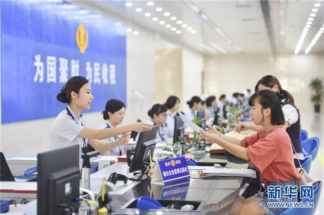 國(guó)家稅務(wù)總局泉州市稅務(wù)局豐澤街辦稅服務(wù)廳的工作人員在新辦企業(yè)服務(wù)窗口為納稅人辦理業(yè)務(wù)(9月13日攝)。國(guó)地稅合并后,國(guó)家稅務(wù)總局福建省稅務(wù)局在全省推行新辦納稅人“套餐式”服務(wù)。 新華社記者 宋為偉 攝