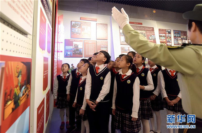 10月9日,少先隊(duì)員們?cè)谖渚不湛傟?duì)合肥支隊(duì)隊(duì)史館參觀。
