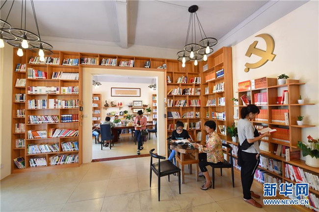 海南省萬(wàn)寧市山根鎮(zhèn)大石嶺村村民在村黨支部帶領(lǐng)村民共建的農(nóng)家書屋內(nèi)讀書(5月16日攝)。 新華社記者 李鑫 攝