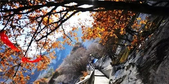 華山的紅葉是一種渾然天成、不加修飾的美。云淡風(fēng)輕、紅葉晚霞,郎才女貌,天然絕配。華山紅葉依托青山白云,無疑中便蘊(yùn)含大自然神秘的面紗,也吸引名人志士的不懈探索與尋覓,天然造成鐘靈毓秀,是珍稀植物的棲息隱居良地。