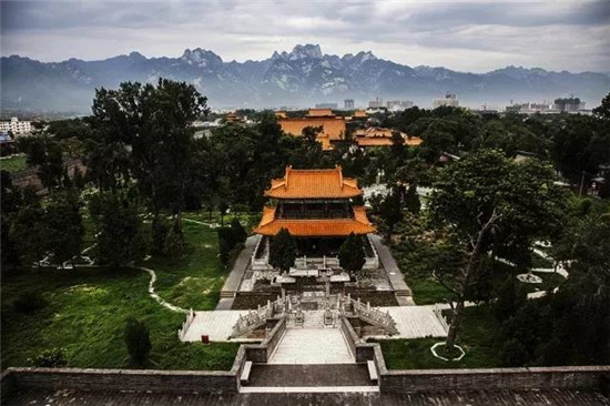 西岳廟始建于漢武帝時代,后成為歷代帝王祭祀華山神的場所。西岳廟坐北朝南,廟門正對華山。在由北至南的中軸線上依次排列著灝靈門、五鳳樓、欞星門、金城門、灝靈殿、寢宮、御書樓、萬壽閣。整個建筑呈現(xiàn)前低后高的格局。