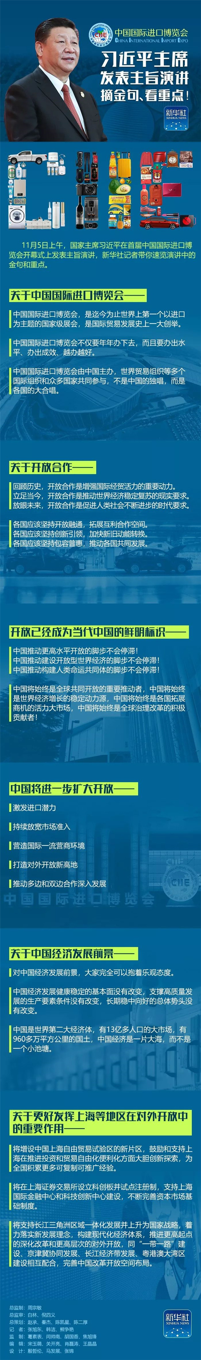 舉辦中國國際進口博覽會,是中國著眼于推動新一輪高水平對外開放作出的重大決策,是中國主動向世界開放市場的重大舉措;這體現了中國支持多邊貿易體制、推動發(fā)展自由貿易的一貫立場,是中國推動建設開放型世界經濟、支持經濟全球化的實際行動。