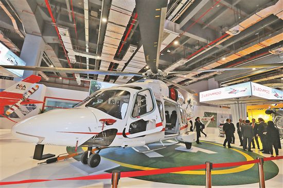 AW189型直升機(jī)是此次進(jìn)博會(huì)上單體價(jià)值最高的一個(gè)產(chǎn)品,價(jià)值2億元人民幣。本報(bào)記者 周燦 攝