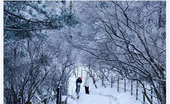 冬季的華山少了夏季的喧鬧,白雪與松檜、陽光與山石就是它最美的景象。每年12月至次年3月是華山的雪季,而前兩天華山已經(jīng)提前下過雪了,整個山體被白雪覆蓋,樹木、巖石、道觀上都披上一層厚厚的棉衣。走進華山仿佛是走進了一個純白的圣潔之地,白色的花崗巖、白色的雪花、白色的樹木…… 在華山,白色也是如此的浪漫唯美。