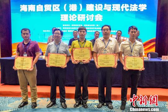 圖為海南省法學(xué)會(huì)向海南自貿(mào)區(qū)(港)法治建設(shè)優(yōu)秀論文撰寫(xiě)者頒獎(jiǎng)?!『閳?jiān)鵬 攝
