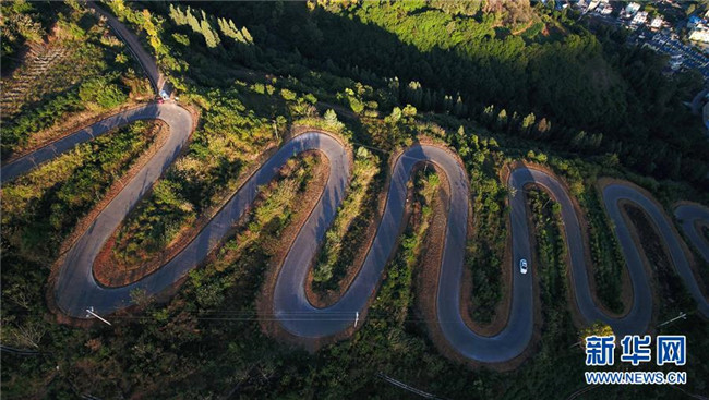 云南宜良“68道拐”位于云南省昆明市宜良縣,是宜良縣城通往靖安哨村的盤(pán)山公路。公路依山梁而修建,蜿蜒曲折,6.3公里的路程共有68道彎?!⌒氯A社記者 藺以光 攝