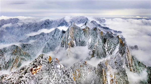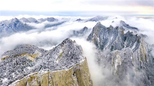 沒(méi)有人工雕飾的美,才是真正的美。比如下雪的華山,就是這樣毫無(wú)修飾的美,滿山雪白,景色壯麗。
