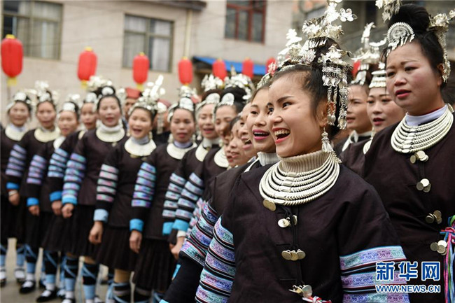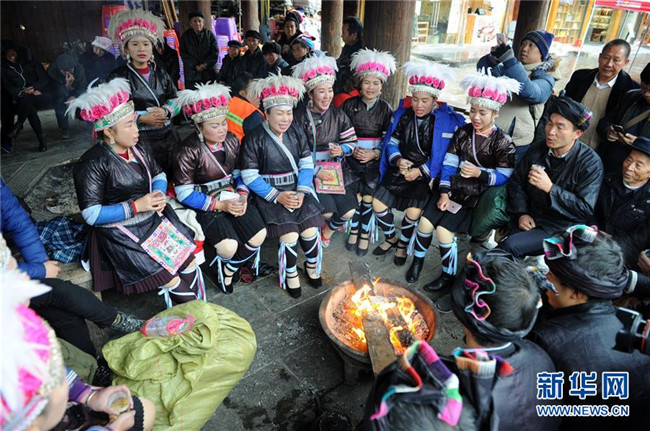 12月9日,在貴州省黎平縣中潮鎮(zhèn)佳所侗寨,侗族同胞盛裝參加侗年活動?!⌒氯A社發(fā)(楊文斌 攝)