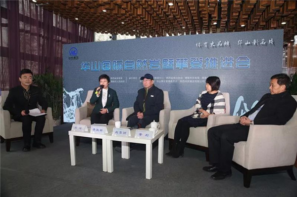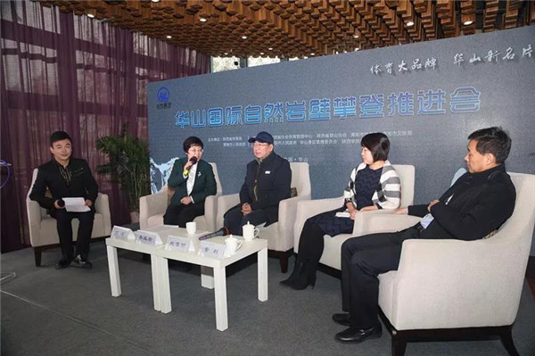 會上,渭南市政府副秘書長李曉京致歡迎詞,集團副總經(jīng)理趙江鋒對華山及周邊旅游資源進行了介紹,攀巖名將、洲際定線員邱洪樹介紹了華山巖壁考察情況,來自英國的攀巖運動員Eli Hardie Howes向與會人員分享了華山巖壁攀登的感受。