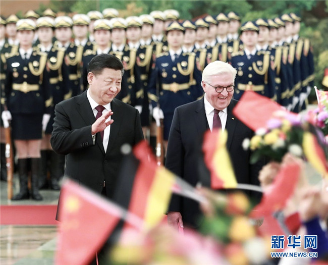 國家主席習(xí)近平10日在人民大會(huì)堂同德國總統(tǒng)施泰因邁爾舉行會(huì)談。兩國元首一致同意,加深互信,合作共贏,推動(dòng)中德全方位戰(zhàn)略伙伴關(guān)系繼續(xù)深入發(fā)展,讓中德合作取得更多有利于兩國和兩國人民、有利于世界和平與繁榮的成果。