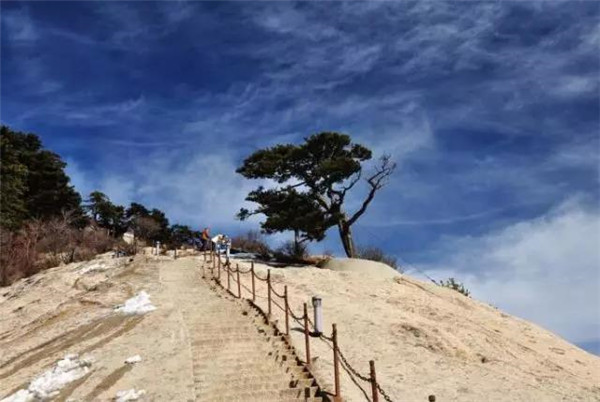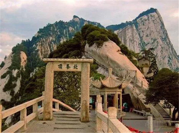 北峰海拔1614米,為華山主峰之一,因位置居北得名。北峰四面懸絕,上冠景云,下通地脈,巍然獨(dú)秀,有若云臺(tái),因此又名云臺(tái)峰。唐李白《西岳云臺(tái)歌送丹丘子》詩曾寫到:“三峰卻立如欲摧,翠崖丹谷高掌。白帝金精運(yùn)元?dú)猓魃徎ㄔ谱髋_(tái)。”