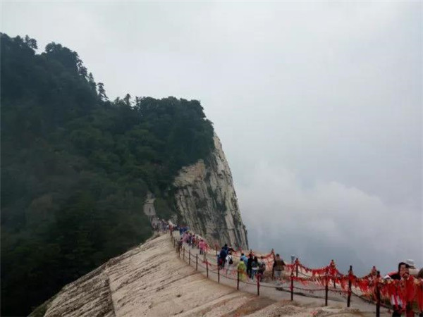 魏晉南北朝時(shí),還沒有通向華山峰頂?shù)牡缆贰V钡教瞥?,隨著道教興盛,道徒開始居山建觀逐漸在北坡沿溪谷而上開鑿了一條險(xiǎn)道,形成了"自古華山一條路"。