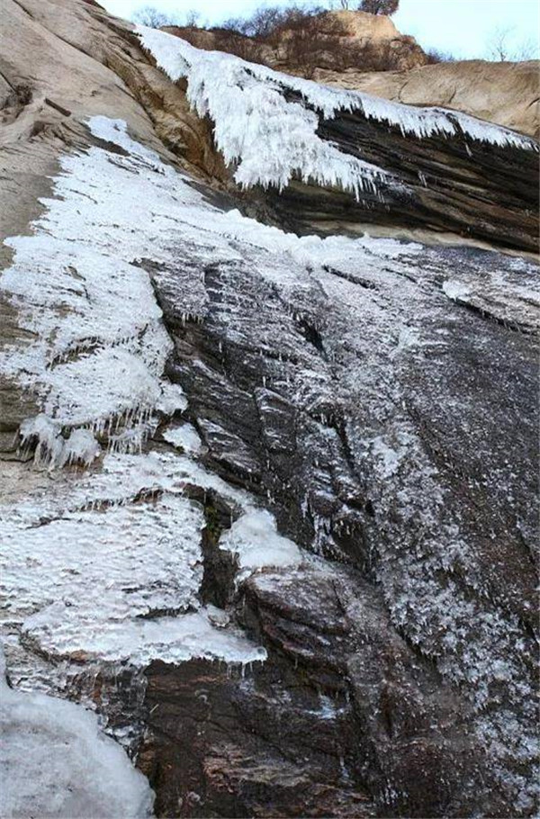 深冬天了雪后會結(jié)冰,那些冰瀑晶瑩剔透,像散落在山谷里的無數(shù)塊玻璃,太陽照耀下反著光,活脫脫就是一個童話般的水晶世界。