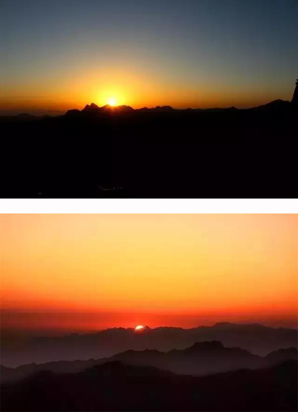 啊!青春的烈焰在升騰;新的生靈在震撼;歲月的車輪滾滾向前……該存在的難消失,該消失的存在難!天和地分了家,光明戰(zhàn)勝了黑暗。黑白交替,陰陽(yáng)輪換!宇宙徹悟,氣象萬(wàn)千。野草滾露,空氣新鮮;松濤簸香,山花爛漫;潮涌般的游客個(gè)個(gè)舒坦,猶如飽乳的嬰兒笑得甜甜。零晨三點(diǎn),漆黑一團(tuán)。熙熙攘攘的游客擁向山路彎彎,歡聲笑語(yǔ)、呼喚吶喊、手電筒的光柱密密麻麻。萬(wàn)萬(wàn)千千織成縷縷金練,宛如“金龍盤山”!朝陽(yáng)峰上熱鬧非凡。不是拜佛求仙,卻耐心等待!企盼一個(gè)輝煌時(shí)刻,猶如新生命噴紅分娩。一飽華山日出的壯觀!