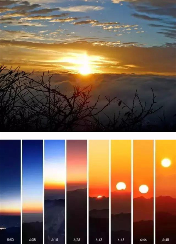 那管勞累氣喘;那管汗水蟄眼;那管步履艱難……疾步“金鎖關(guān)”,直上“三峰巔”!誰(shuí)料黎明時(shí)分天氣變,風(fēng)吹烏云卷狂瀾!面對(duì)成功的一幕,緊捏一把汗。不看日出似乎寡淡。經(jīng)過激烈的廝殺,可喜的是天公降臨的“狂飆”啊,猶如英雄的東方赤子,敢向任何生命的敵人宣戰(zhàn)。