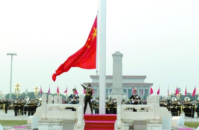 ▲1日早晨,北京天安門廣場(chǎng)舉行隆重的升國旗儀式。新華社發(fā)(唐召明攝)