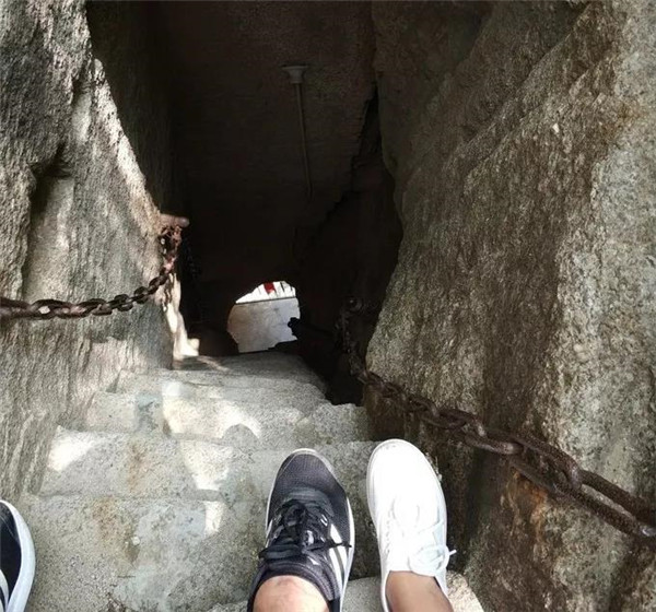 古書記載:在華山大上方有一天然石洞,形似豎井,壁如刀削,僅容一人上下。洞邊有一木梯,石壁上刻有“洞在高山”四個大字。出洞四望,豁然開朗,峰巒疊翠,林木蒼郁,奇花競秀,流泉淙淙,飛鳥時鳴,給人一種“無限風(fēng)光在險峰”之感。因為大上方道路艱險,不是游客必經(jīng)之地,但古書記載的景點就在那里。