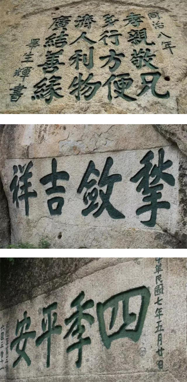 華山的摩崖石刻,是華山文化的載體和藝術(shù)的展現(xiàn),在思想內(nèi)容上或傾吐愛國之情,或贊頌大好河山,或記游感懷,或標示地名景觀,或反映道家思想,或鼓勵登山者,不一而足;在書法藝術(shù)上,行、楷、草、隸、篆風格多樣,以健康積極的內(nèi)容和優(yōu)美而饒有風趣的文采點綴和升華了自然景觀,為旅游者帶來了難以忘懷的美感和藝術(shù)熏陶,為華山奇險峻秀的山水增添了深厚的人文內(nèi)涵。