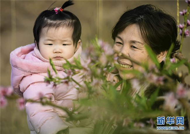1月27日,在新疆鄯善縣辟展鎮(zhèn)大東湖溫室大棚基地,游客在觀賞桃花。新華社記者王菲攝