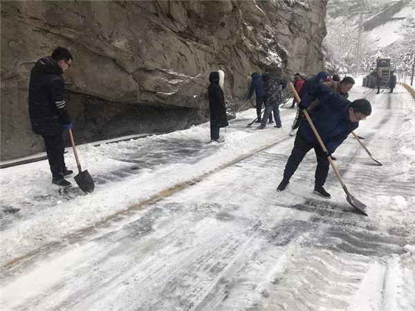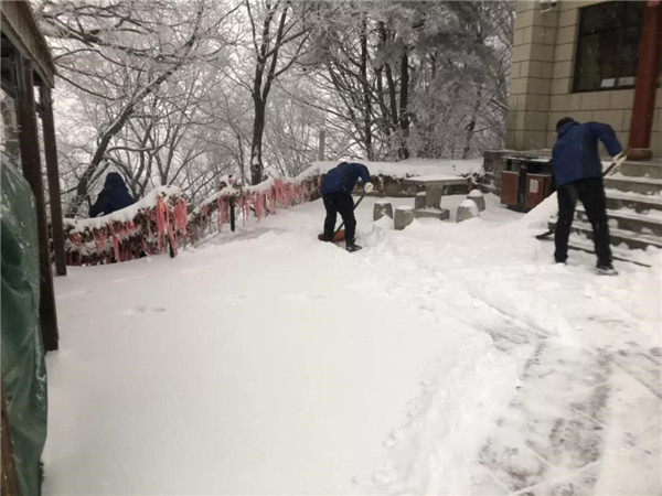 主峰區(qū)工作人員晝夜24小時(shí)不間斷清理積雪