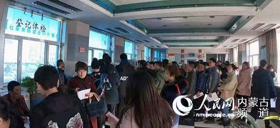 錫林郭勒盟中心血站內(nèi)排滿了前來獻血的市民。