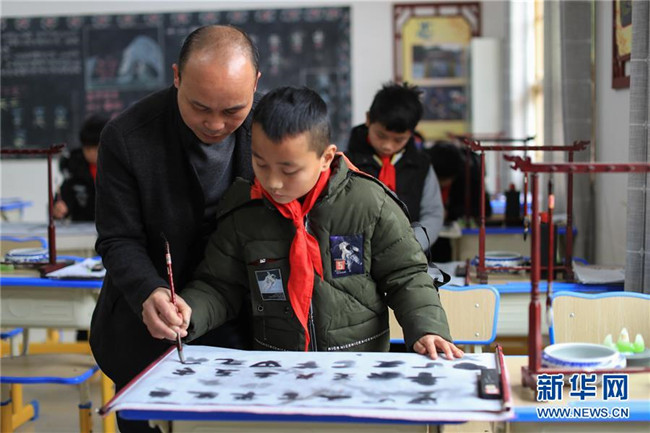 2月26日,榕江縣水尾水族鄉(xiāng)中心學(xué)校的學(xué)生在學(xué)習(xí)水書。近年來,貴州省黔東南苗族侗族自治州榕江縣水尾水族鄉(xiāng)倡導(dǎo)水族文化進校園,深受學(xué)生喜愛。新華社記者劉續(xù)攝