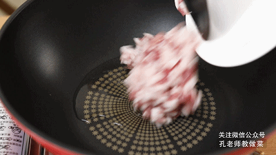 7.再倒入香菇煸炒1分鐘,最后倒入肉丁一起翻炒均勻。