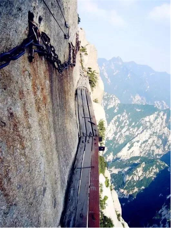 我站在華山兩塊窄窄的木板上,依靠鐵釘楔入巖石作為支撐,我的腳下,是1000米的深谷,冰雪的路面很滑。我來華山旅游純粹是因為在互聯(lián)網(wǎng)上瘋傳的一張圖片,也就是指“世界上最危險的登山路”那張?,F(xiàn)在有了安全保護措施,實際上用不著擔(dān)心危險了??謶致可闲念^,頭腦變得有些麻木。西安是中國的古城,在強盛朝代時期占有重要的歷史地位。