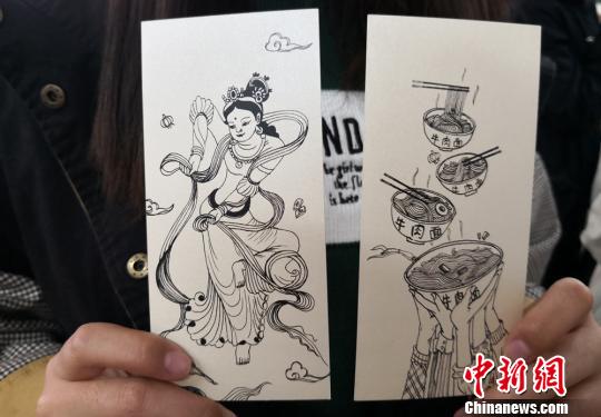 圖為將蘭州牛肉面融入敦煌飛天創(chuàng)作?!⒂裉?攝