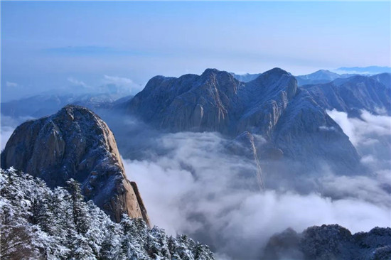 華山以奇險峻秀聞名于天下,素有“奇險天下第一山”之稱。明代著名地理學家徐霞客的游記中描述:“未入關,百里之外,即見太華山搜索兀出云表。”