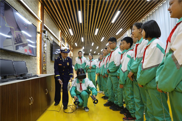 在寧夏銀川閱海九中,一堂生動有趣的消防示范課吸引了學(xué)生們觀看。學(xué)校老師結(jié)合網(wǎng)上流行的“找茬”游戲,繪制了一幅消防漫畫圖,鼓勵學(xué)生們走上講臺,開動腦筋,查找漫畫里的消防安全隱患。在寧夏中小學(xué)消防科普體驗(yàn)館里,一處VR虛擬體驗(yàn)區(qū)吸引了不少學(xué)生前來參觀和體驗(yàn)!計(jì)算機(jī)模擬生成多類“火災(zāi)現(xiàn)場”環(huán)境,參加體驗(yàn)的學(xué)生只要戴上眼鏡,身處虛擬的“火災(zāi)現(xiàn)場”,通過頭和手等身體部位和傳感器的配合,就能模擬體驗(yàn)一把“滅火”和火場逃生!