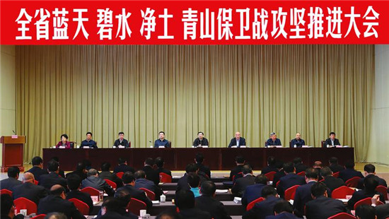 3月26日,全省藍(lán)天、碧水、凈土、青山保衛(wèi)戰(zhàn)攻堅(jiān)推進(jìn)大會(huì)在西安召開。省委書記胡和平出席會(huì)議并講話。 記者 宋紅梅攝