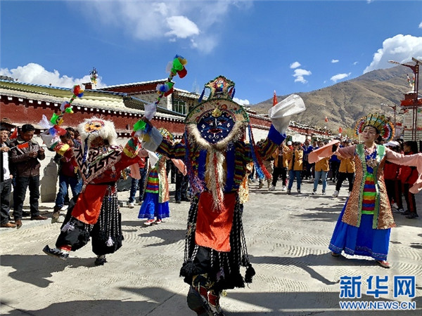 國家級藏戲傳承人班典旺久(中)。新華網(wǎng) 達珍 攝