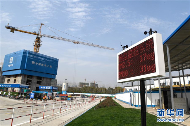 這是3月26日在“浙江智慧之門”項(xiàng)目現(xiàn)場(chǎng)拍攝的揚(yáng)塵監(jiān)控系統(tǒng)顯示屏。據(jù)了解,揚(yáng)塵超過閥值就能自動(dòng)啟動(dòng)噴淋設(shè)備,給工地降塵。新華社記者黃宗治攝