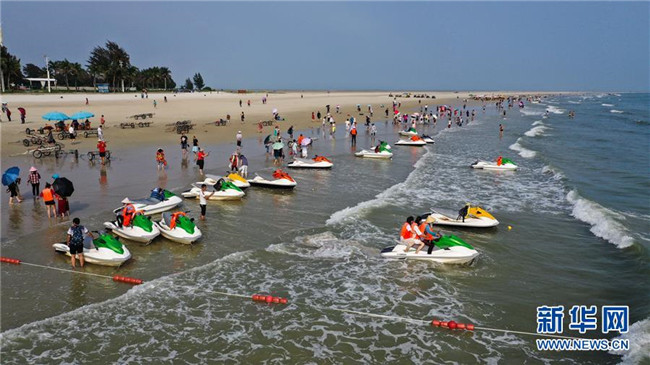 近日,隨著氣溫回升,眾多游客來到廣西北海銀灘旅游,享受碧海藍(lán)天帶來的樂趣。 新華社記者 張愛林 攝