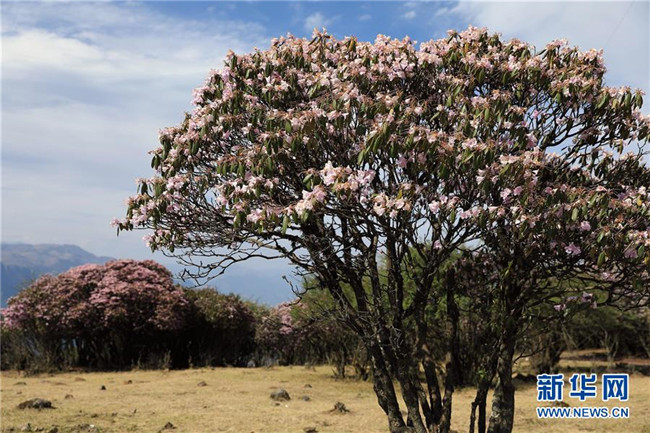 4月23日,戶外愛(ài)好者經(jīng)過(guò)龍頭山野生杜鵑花。 近日,四川省攀枝花市鹽邊縣龍頭山十余萬(wàn)畝野生杜鵑花盛開(kāi),吸引省內(nèi)外游客前來(lái)登山賞花。 龍頭山位于四川省攀枝花市鹽邊縣北部的紅寶苗族彝族鄉(xiāng)境內(nèi),這里的野生杜鵑花花期為2月至5月。 新華社記者 江宏景 攝